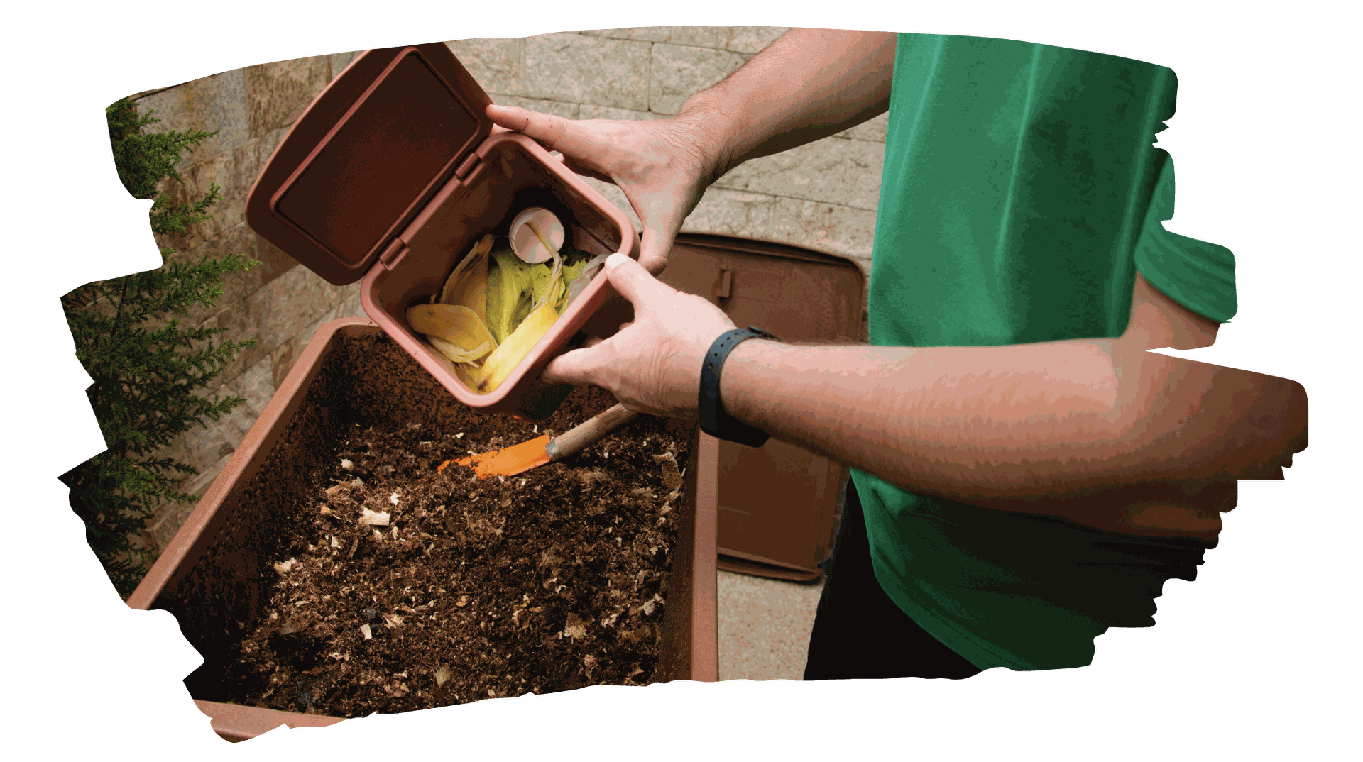 Equilibrio entre materiales húmedos y secos: alterna restos “verdes” (ricos en nitrógeno) con materiales “marrones” (ricos en carbono) como hojas secas, cartón o serrín.