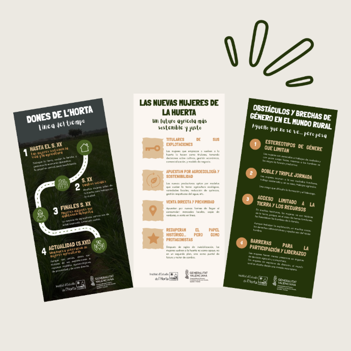 Se ha elaborado una Guía digital para la visibilización del papel histórico y actual de las mujeres en la huerta valenciana. Esta Guía se encuentra disponible para su descarga en el apartado "Igualdad entre mujeres y hombres" de la web.