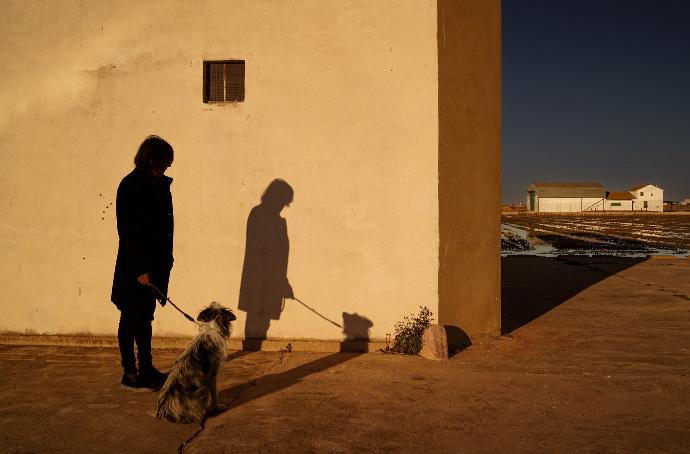 En esta foto las sombras se proyectan sobre el blanco de una de las "casas de agua" que flotan sobre los arrozales. El tema del reflejo, del doble y del espejismo son para mí, algunos de los elementos que hacen de l´Albufera, un lugar mágico donde las sombras se desdoblan como las casas blancas que se repiten iguales entre sí y en el agua estableciendo ese vínculo mágico entre la belleza y la sencillez de la naturaleza y de los cultivos.